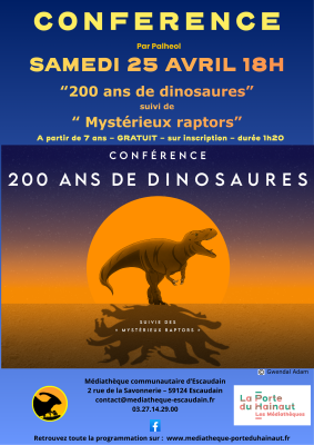 RENCONTRE "200 ans de dinosaures" suivi des "Mystérieux raptors" Escaudain